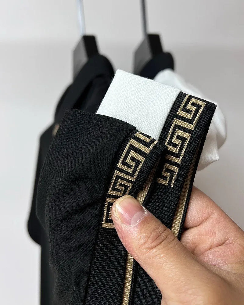 Italian-Inspired White Polo T-Shirt Greek Key Collar & Embossed 'V' Crest Badge
