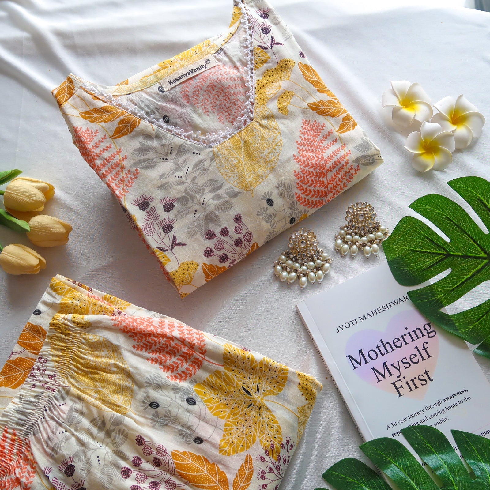 The kurta, tailored in a classic straight style. Each bloom is intricately printed, creating a mesmerizing tapestry of color and texture reminiscent of a majestic garden in full bloom.