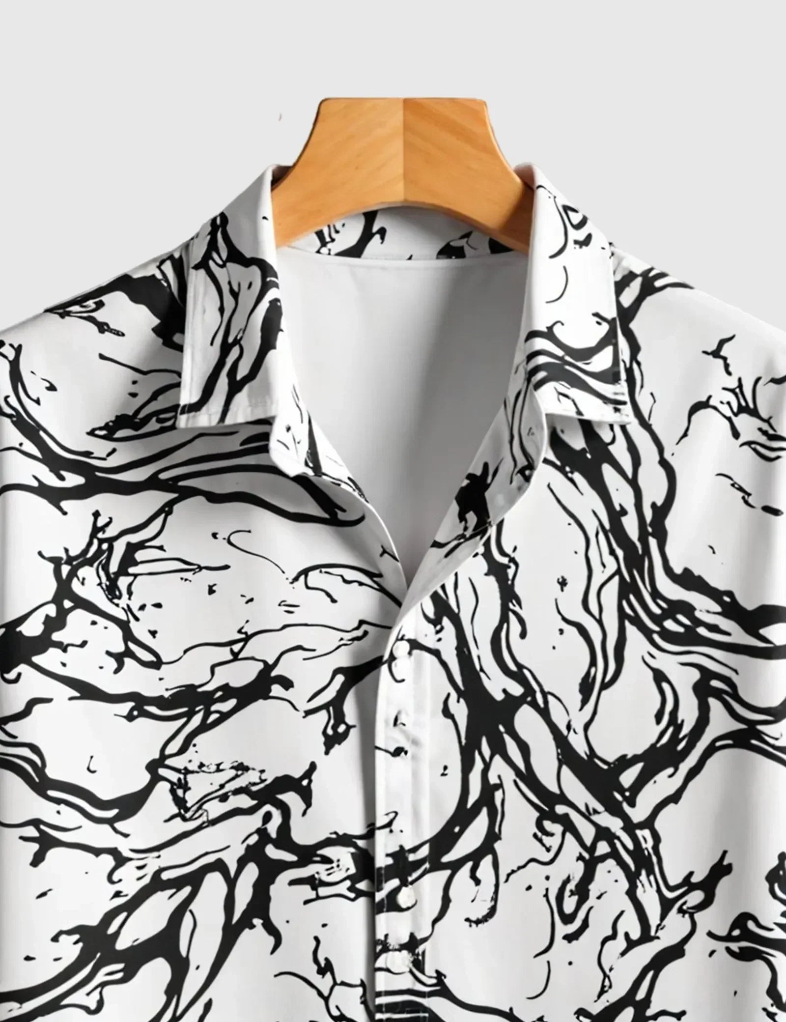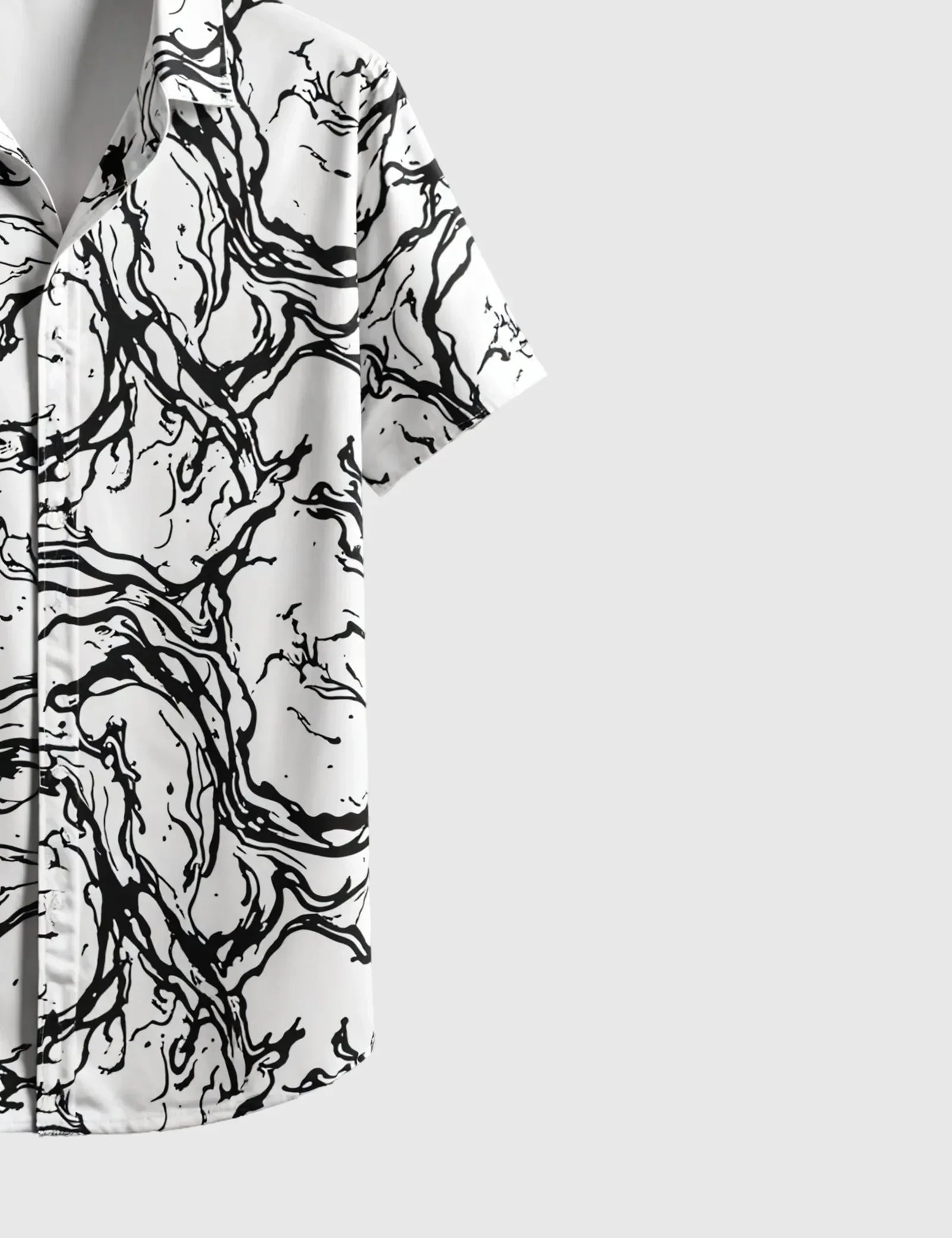 Monochrome Marble Flow Shirt – Black Abstract Swirl Print on White