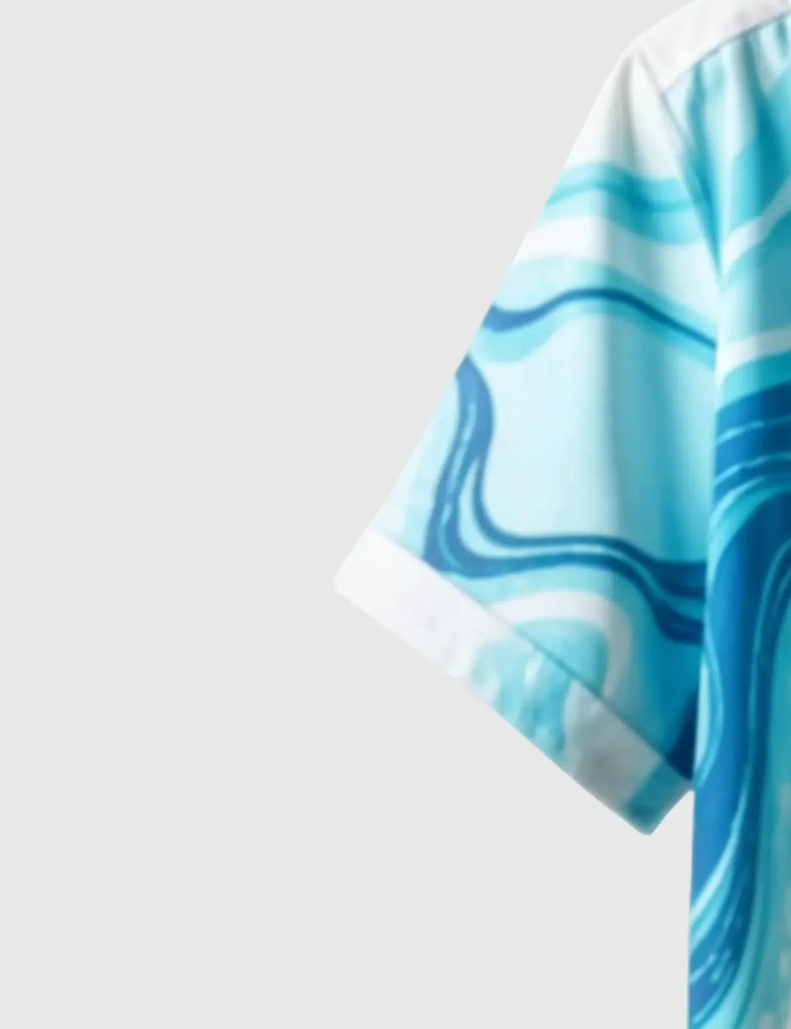 Ocean Drift Men's Abstract Wave Shirt – Cool Blue Swirl Print on White