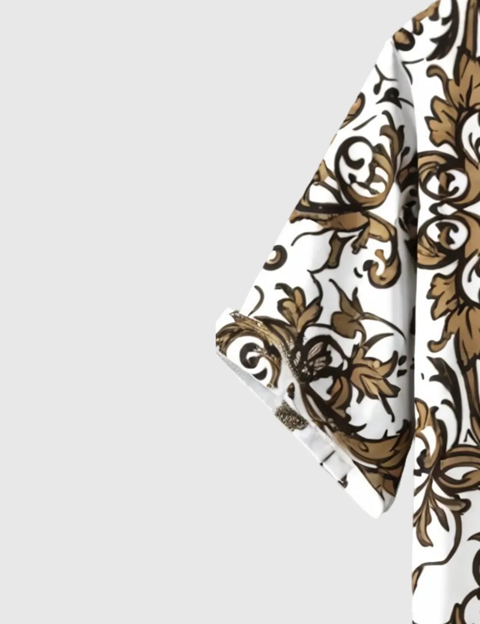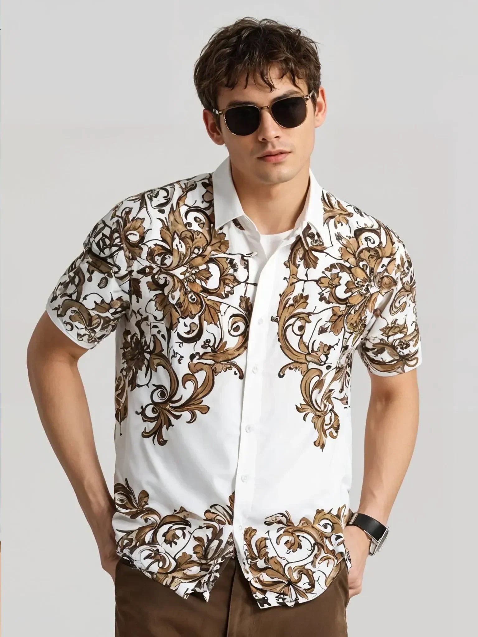 Regal Baroque Bloom Shirt – Golden Ornate Print on Classic White